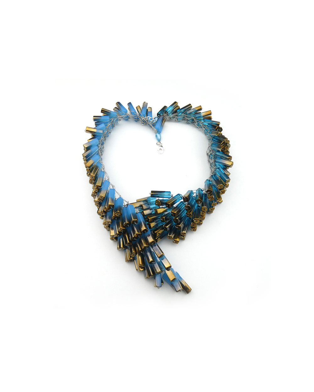 On one side of the necklace the sapphire blue coloured beads are clear, on the other, overlapping, side the beads are opaque.