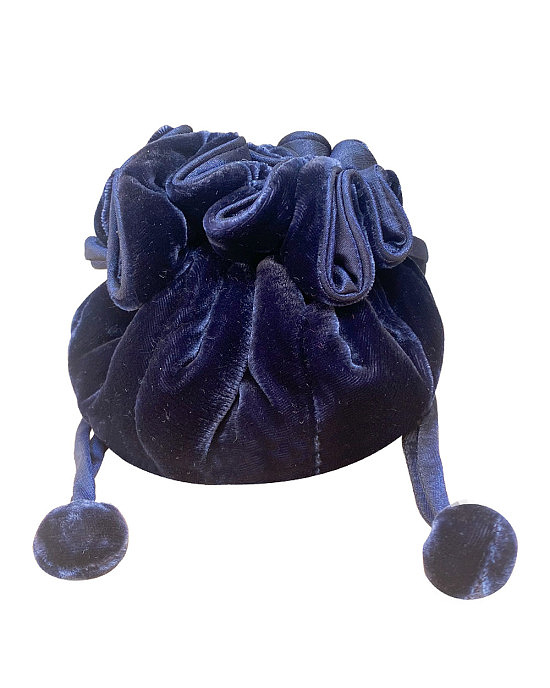 Navy Silk Velvet Jewellery Pouch – A Lovely little silk velvet draw-pull pouch in navy with an attractive navy satin lining and little internal pockets.