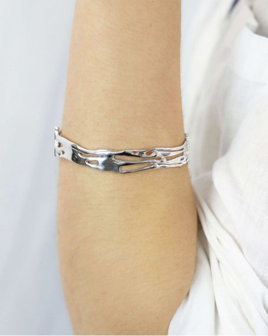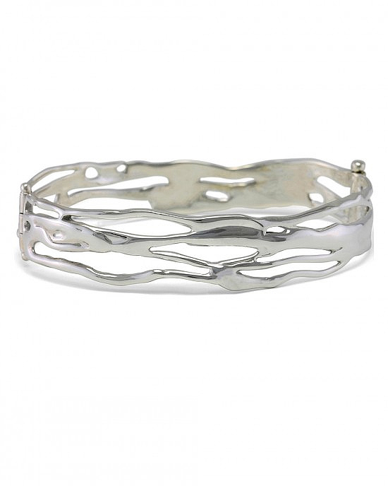 Silver Organic Hinged Bracelet, small – a silver bracelet with a flowing, organic design, typical of Banyan Jewellery, with an easy fit hinge. A slightly wider bracelet in a similar design is also available on Kiena Jewellery.
