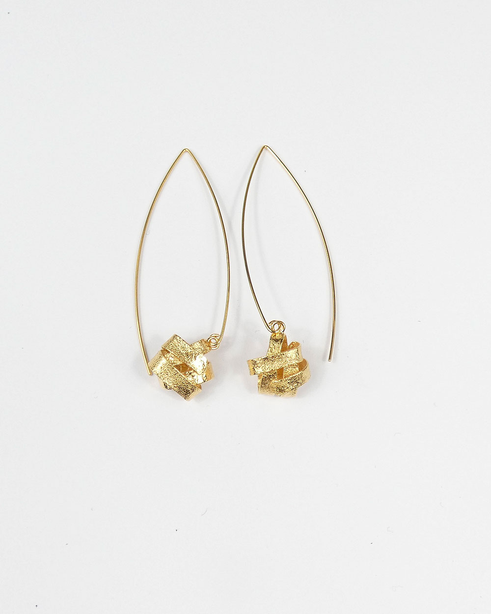 Textured strips of the gold plated silver are interwoven in a 3 dimensional form and hang freely from the hooks. The earrings are from the Algae jewellery collection, the inspiration for which came to Karolina during a visit to Sardinia when, on a beach walk she became fascinated by the shapes and forms of algae.