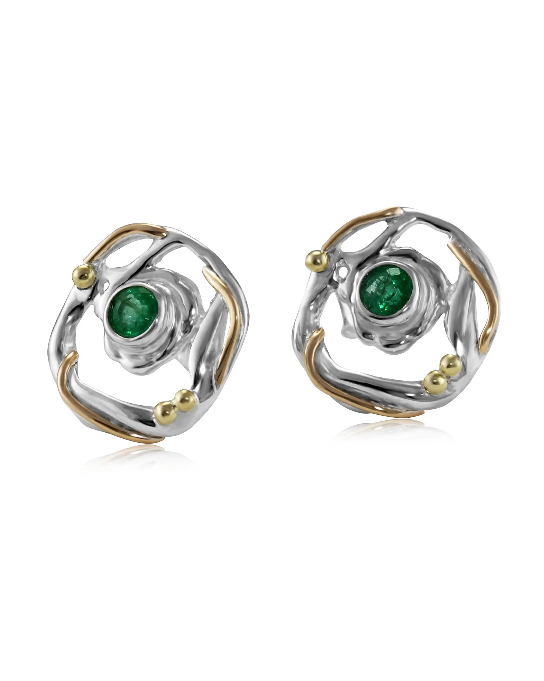 Circular Silver Stud Earrings with Emeralds