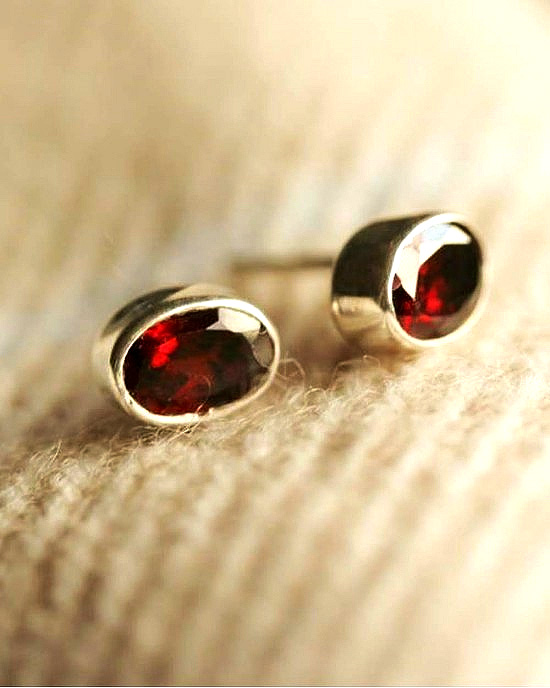 Oval Garnet Silver Studs – lovely faceted garnets set in a simple silver mount form these stylish and attractive studs by designer Claire Hartley.