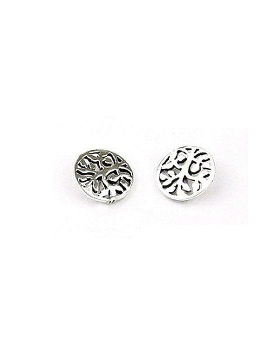 These small sterling silver earrings are circular in outline and contain an open tree design.