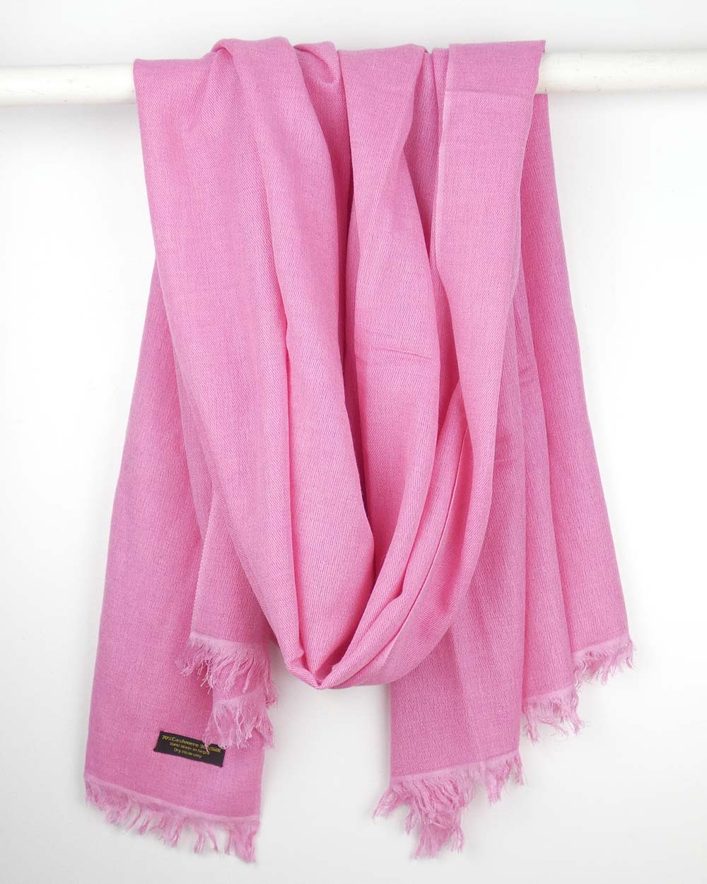 Cashmere, Silk Scarf – Pink. A long fine cashmere wool and silk mix scarf in a rich pink tone, which is finished with a fringe.