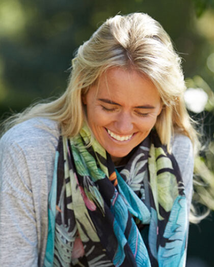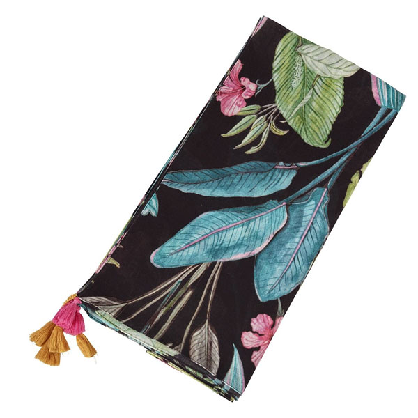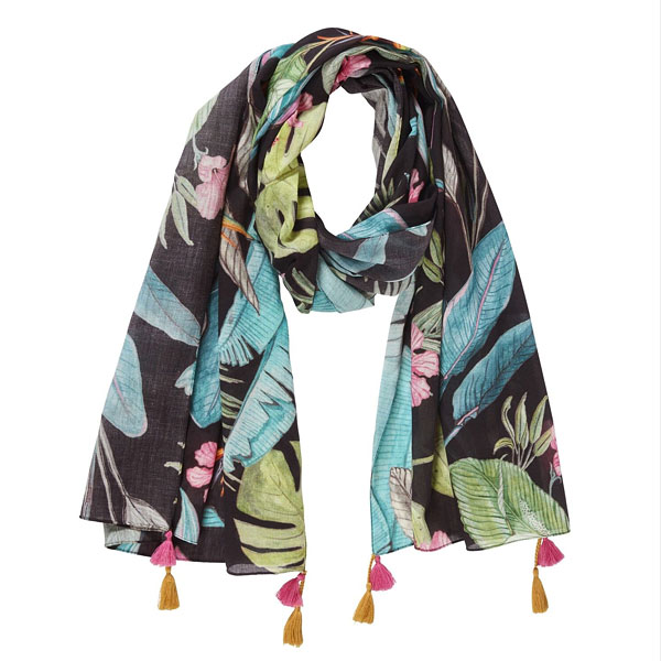 Hawaiian Nights Scarf – Leaves, Charcoal – A distinctive pure cotton scarf with a richly coloured, hand painted tropical design.