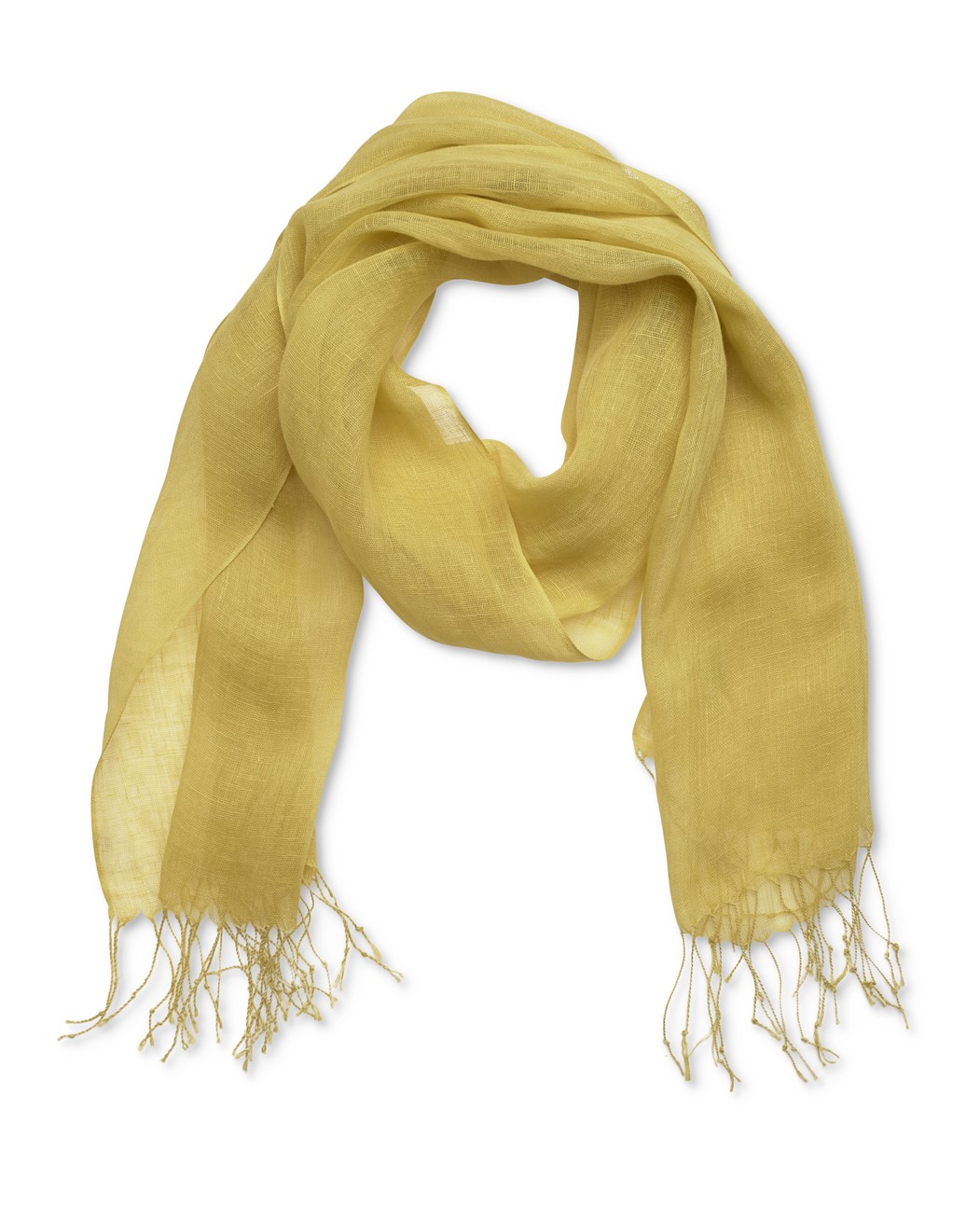 Linen Scarf in Yellow – a soft, long, pure linen scarf with fringed ends from Quintessential of Cambridge.