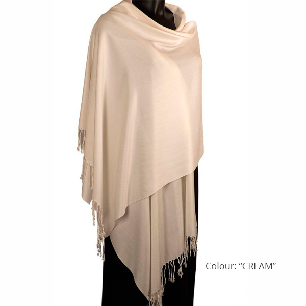 Long Fringed Shawl – Cream – a soft, long pashmina scarf made from a quality yarn with a dense weave which gives a lovely drape.